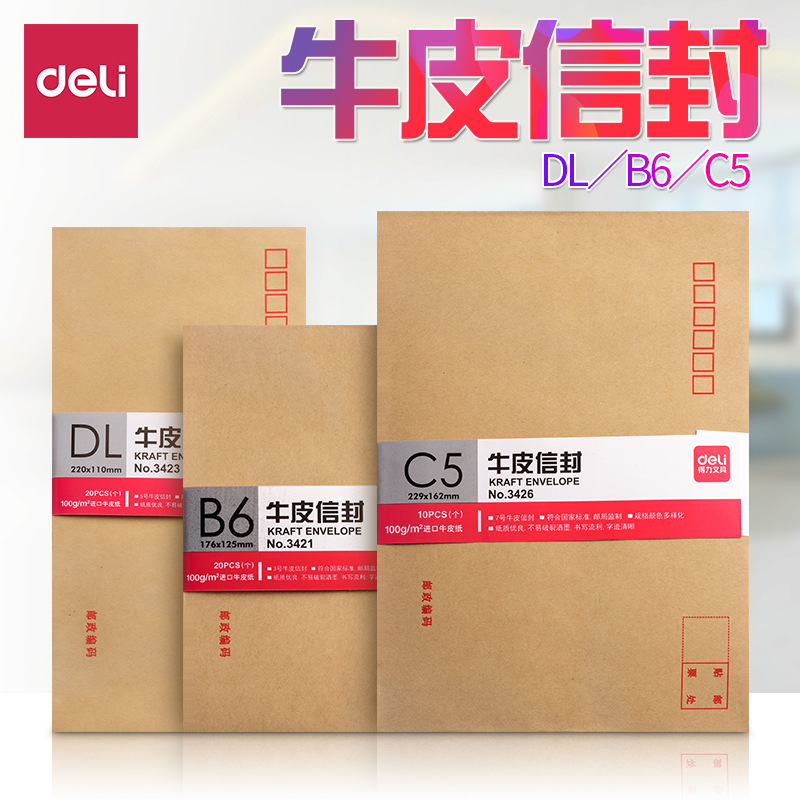 得力3423牛皮纸信封220*110mm【20个/包】5号黄色牛皮信封批发