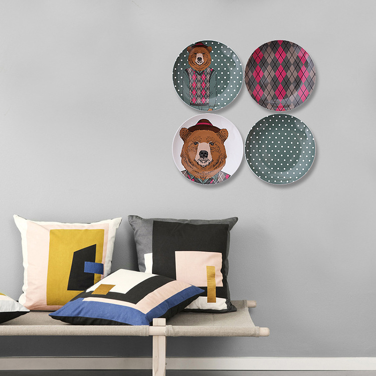 北欧のシンプルな漫画の熊さんの壁の装飾品の陶磁器の皿は飾って皿の壁を飾って背景の壁を飾って卸売りします。
