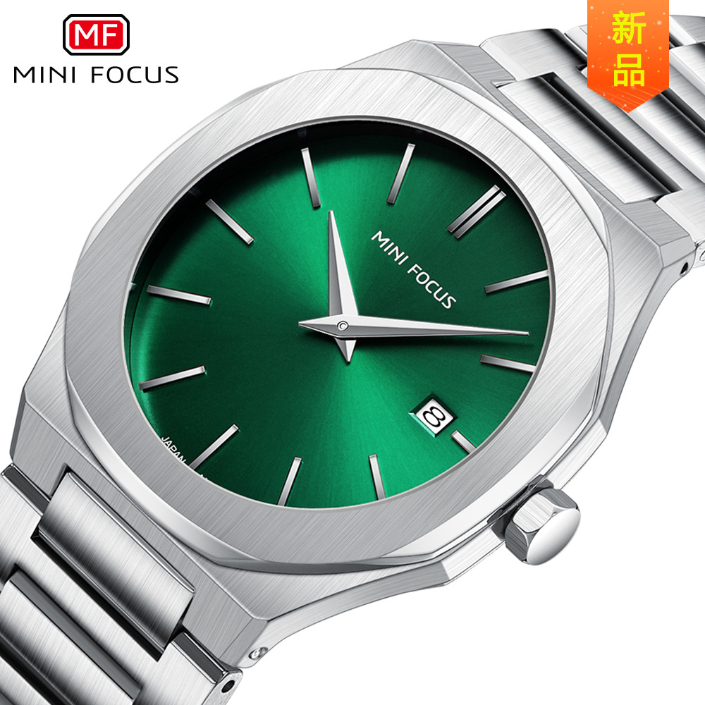 Mini focusブランド腕时计カジュアル男性时计防水クォーツ时计夜光スチールストラップメンズ腕时计0470g