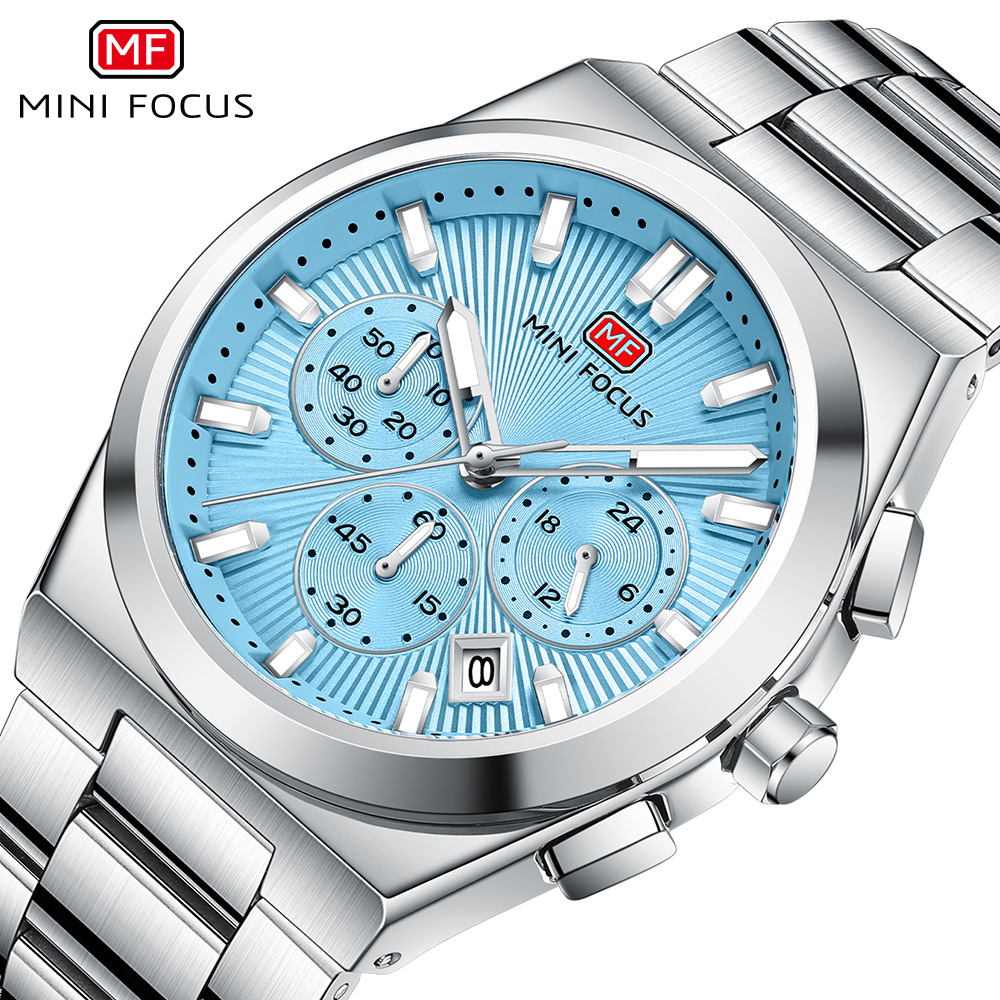 MINI FOCUS腕时计ビジネスカジュアル男性时计多机能クォーツ时计防水スチールベルト男性腕时计0614G