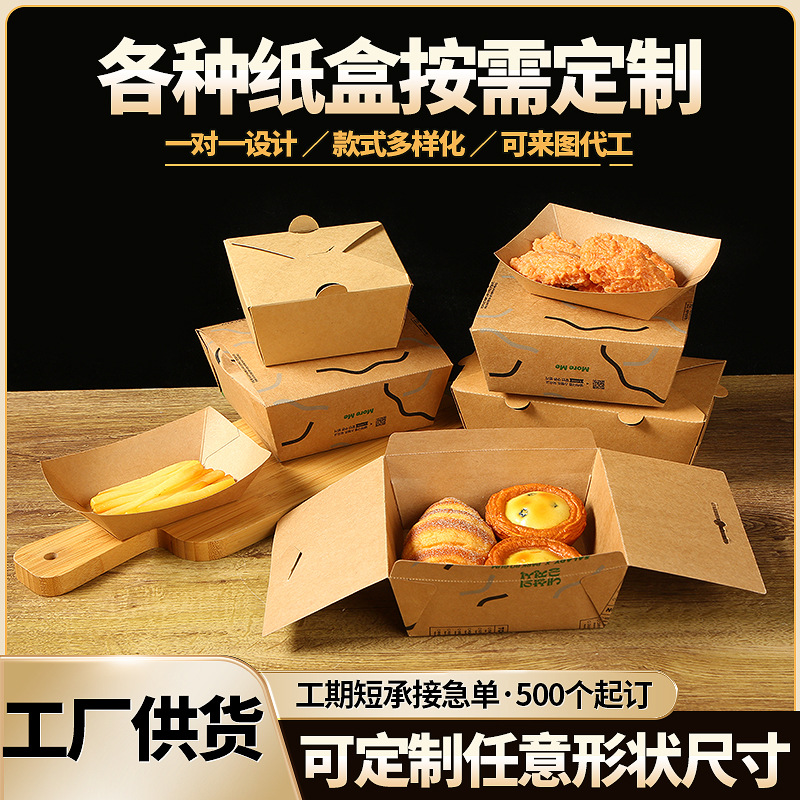 牛皮纸餐盒打包盒一次性外卖打包盒韩式炸鸡小吃防油打包纸盒定制