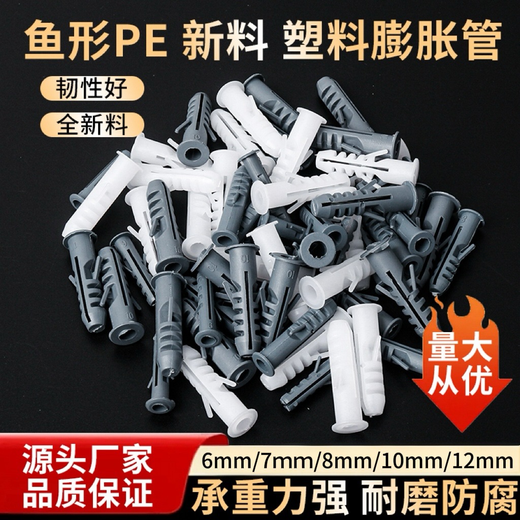 PE魚型プラスチック拡張管 白色/灰色プラスチック栓 ボルト拡張栓 6/7/8/10/12mm ゴム栓