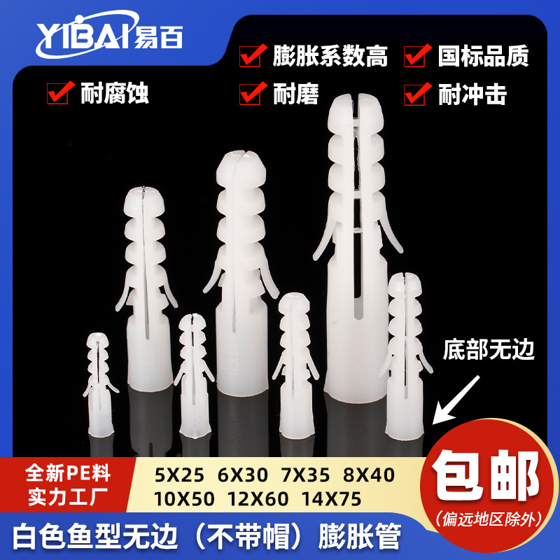 国標膨張管白色縁なし魚型膨張ねじ5mm 6mm 7mm 8mm 10mm 12mm 14mm
