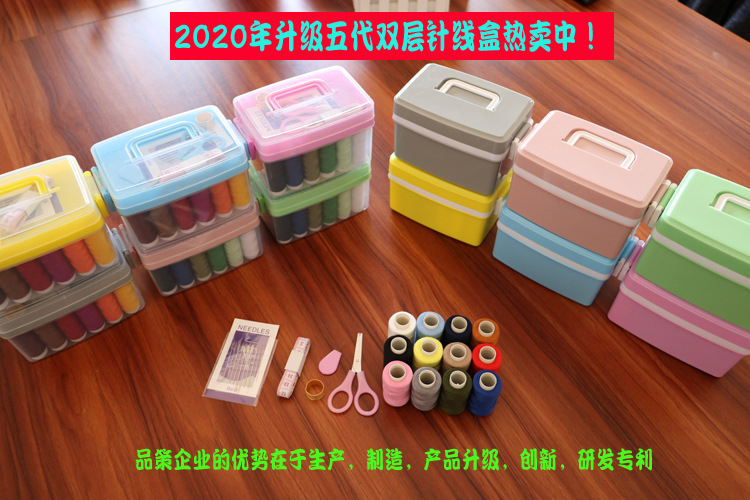 五代双层针线盒装箱数量:60盒/箱  箱规:41*38*3cm