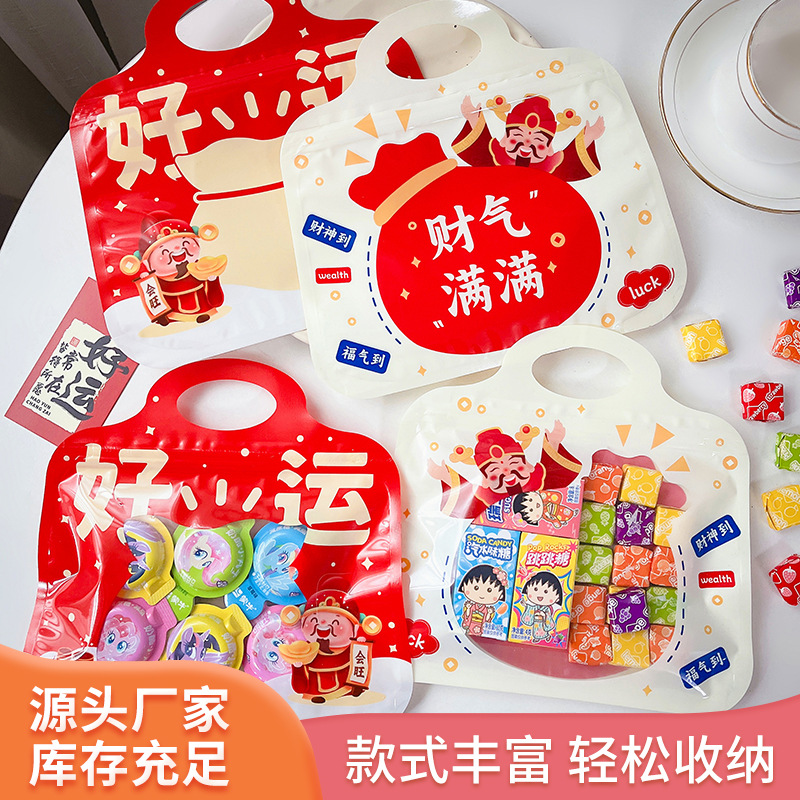 手提好运发财卡通袋糖果异形袋节日礼品包装袋儿童零食自封袋批发