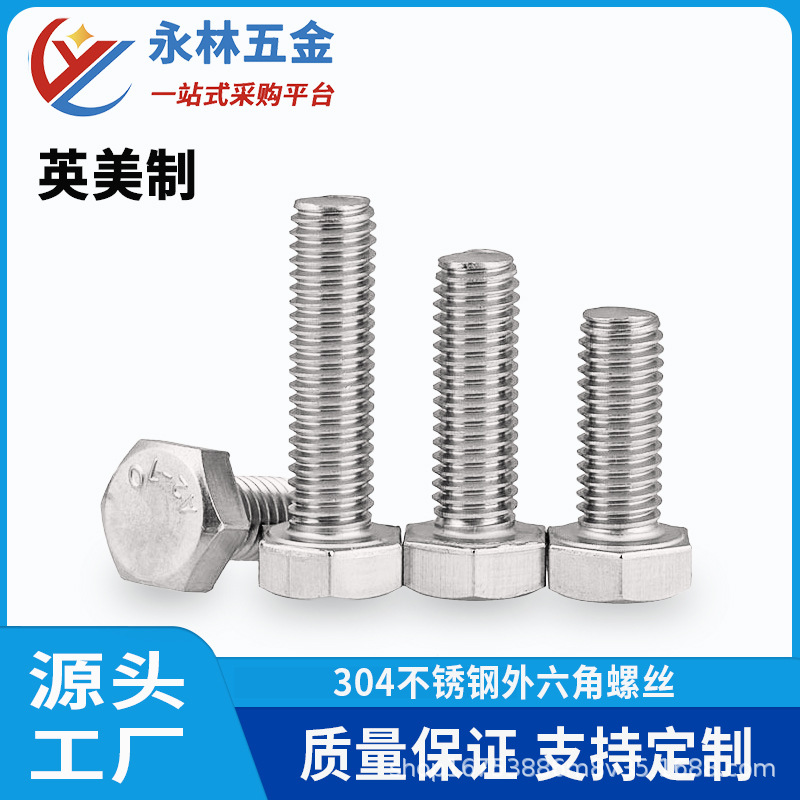 1/4-20 5/16-18 3/8-16uncステンレス304美製外六角ねじ英製六角ボルト