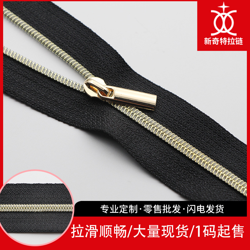 No. 3 ナイロン電気メッキ歯模造金属ジッパーナイロンライトゴールド歯コードストリップジッパー革製品ゴム歯ジッパー