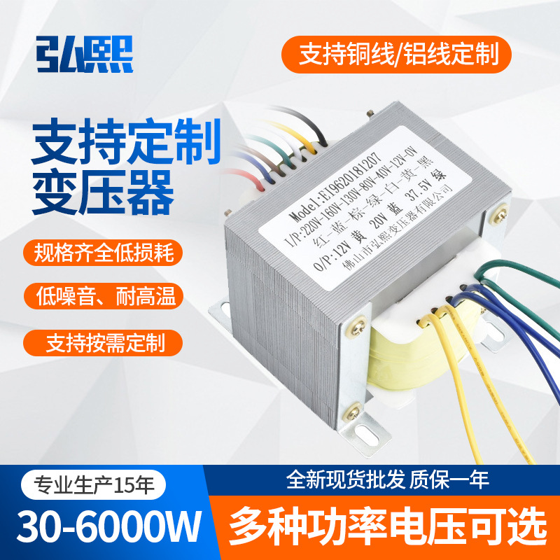佛山市弘熙变压器有限公司是一家专业生产低频变压器、逆变压器、220V转110V电源电压转换变压器、电源变压器环型变压器、EI型变压器的生产厂家、拥有完整、科学的质量管理体系。产品广泛应用于公共广播、专业功放、教学仪器、舞台灯光、包装机械等各大领域。本公司拥有雄厚的技术力量和完善的生产检测、试验设备。具有开发、设计、生产各类新型、 、 、低噪音变压器的能力.多年来,我们以技术为先驱,以质量求生存,以服务为责任的宗旨,赢得了广大用户的信赖和赞誉,佛山市弘熙变压器有限公司的诚信、实力和产品质量获得业界的认可。欢迎各界朋友莅临参观、指导和业务洽谈。