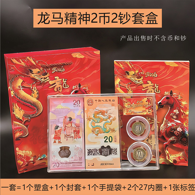 2026年龙马精神2币2钞礼盒2枚27mm纪念币+2张钞收藏盒展示套盒