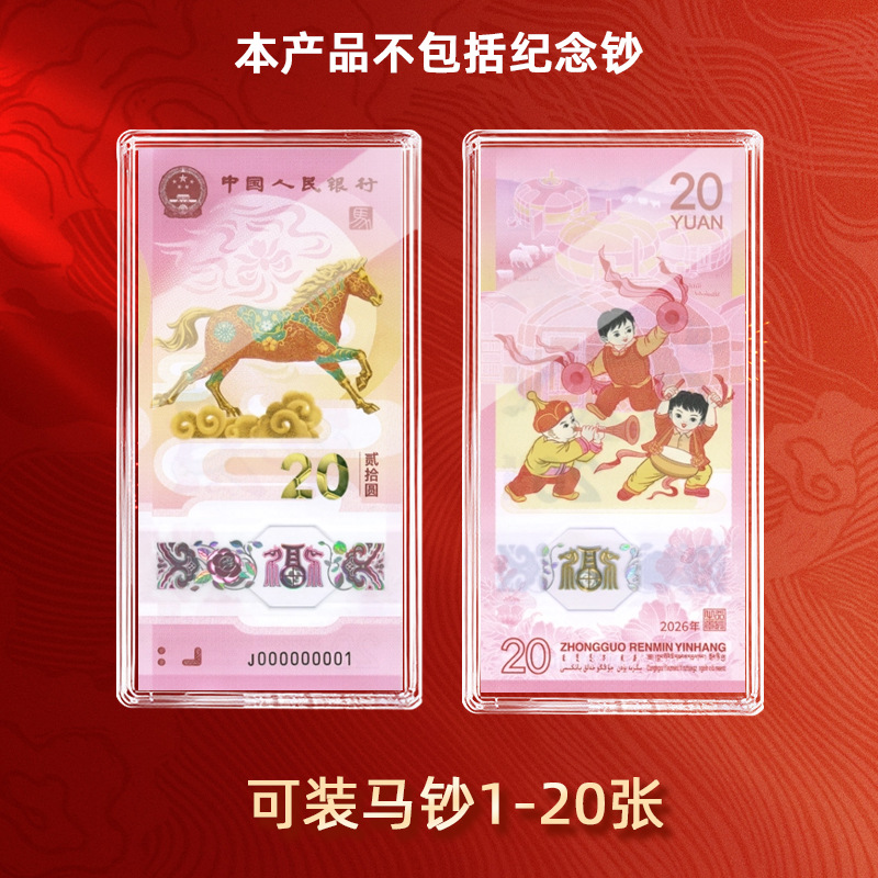 2026年马年长条款1币1钞塑盒1枚27mm纪念币+1张马钞收藏盒透明盒