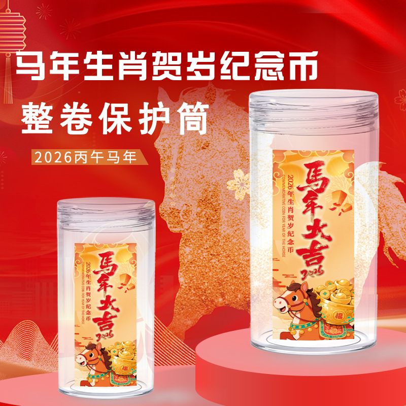 2026马年生肖纪念币卷筒整卷收藏筒纪念币保护筒钱币收藏盒硬币筒