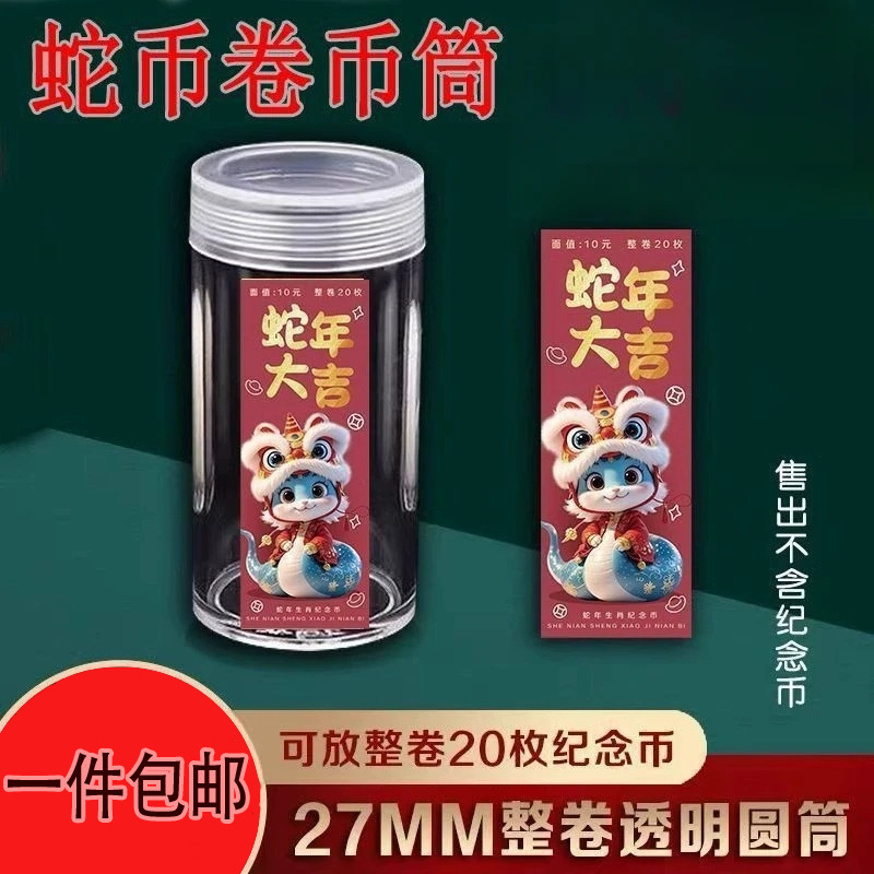 蛇年纪念币保护筒整卷收藏桶12生肖龙币收纳筒27mm保护圆筒收藏盒