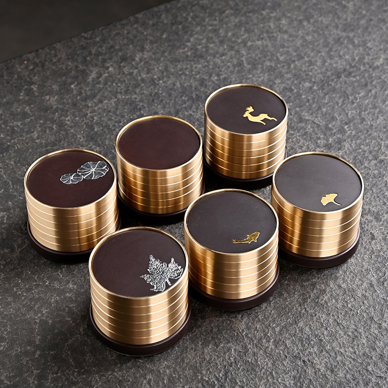 茶杯托电木铜木杯垫纯黄铜茶杯托高档会客功夫茶道配件隔热茶垫子