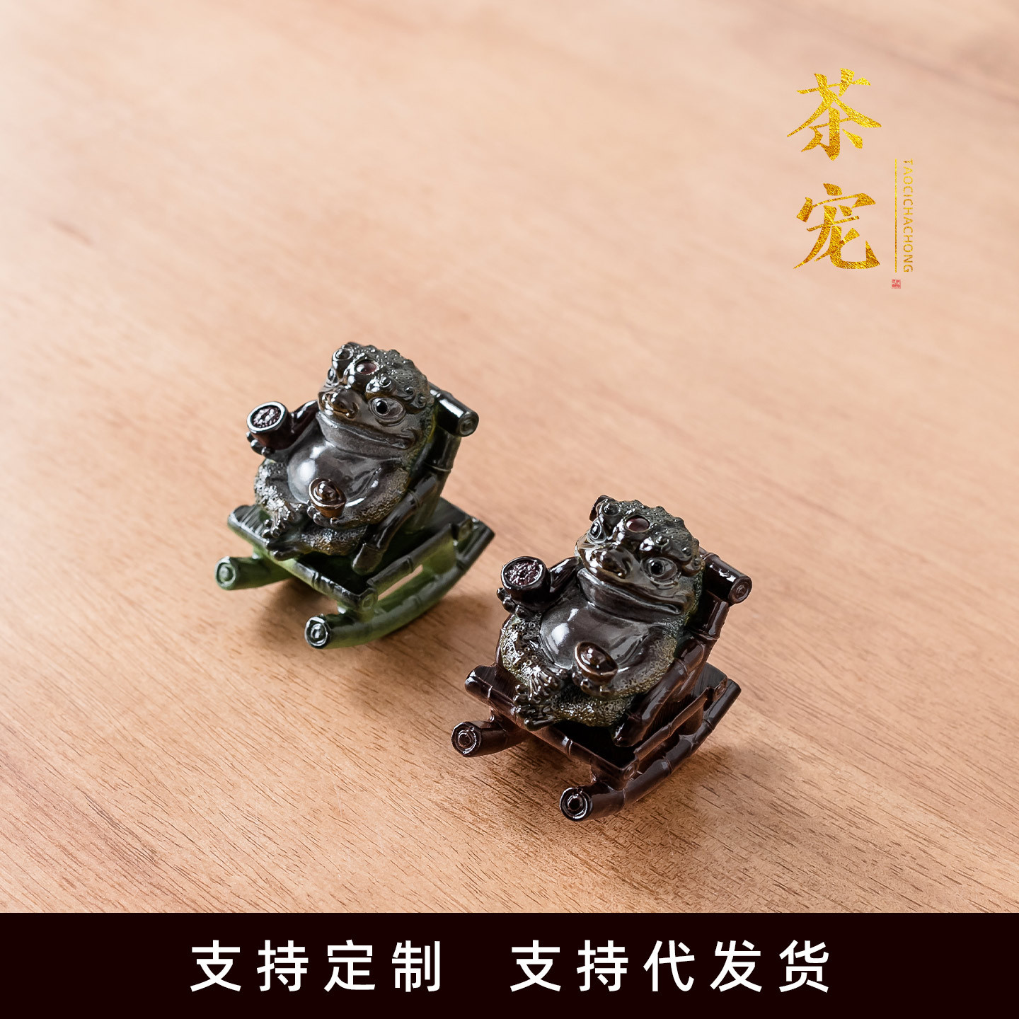 创意变色摇椅金蟾茶宠摆件中式招财金蟾茶几可养茶具茶盘配件茶玩
