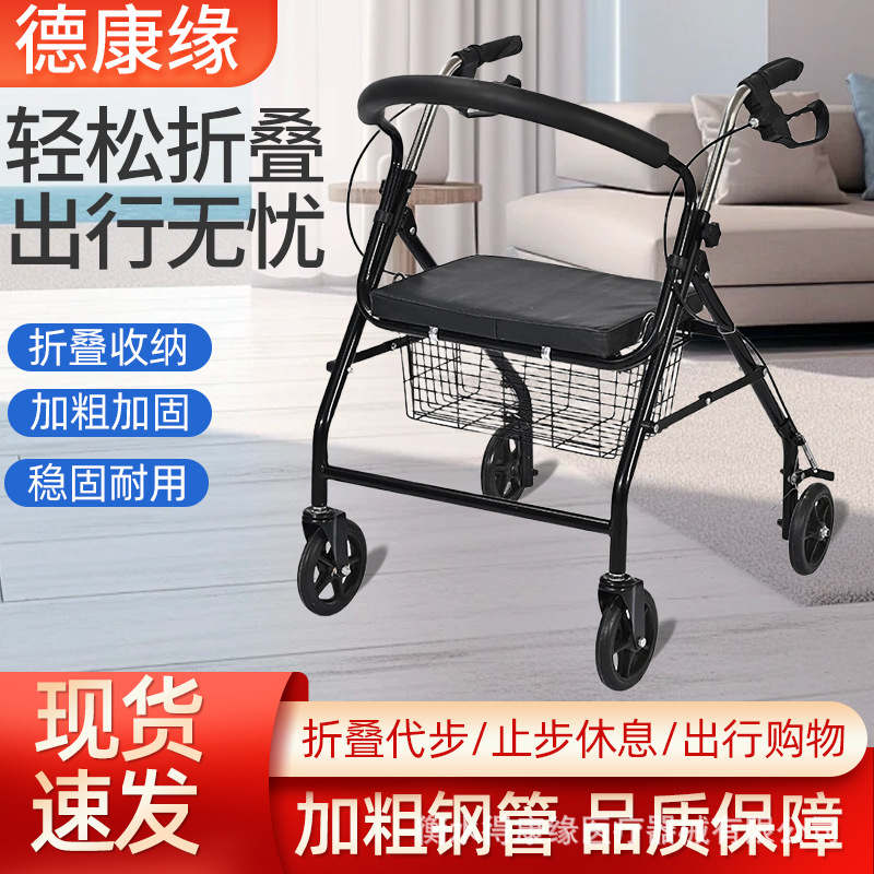 高齢者障害者歩行器ホルダー付き折りたたみ歩行器車椅子式歩行器メーカー直供