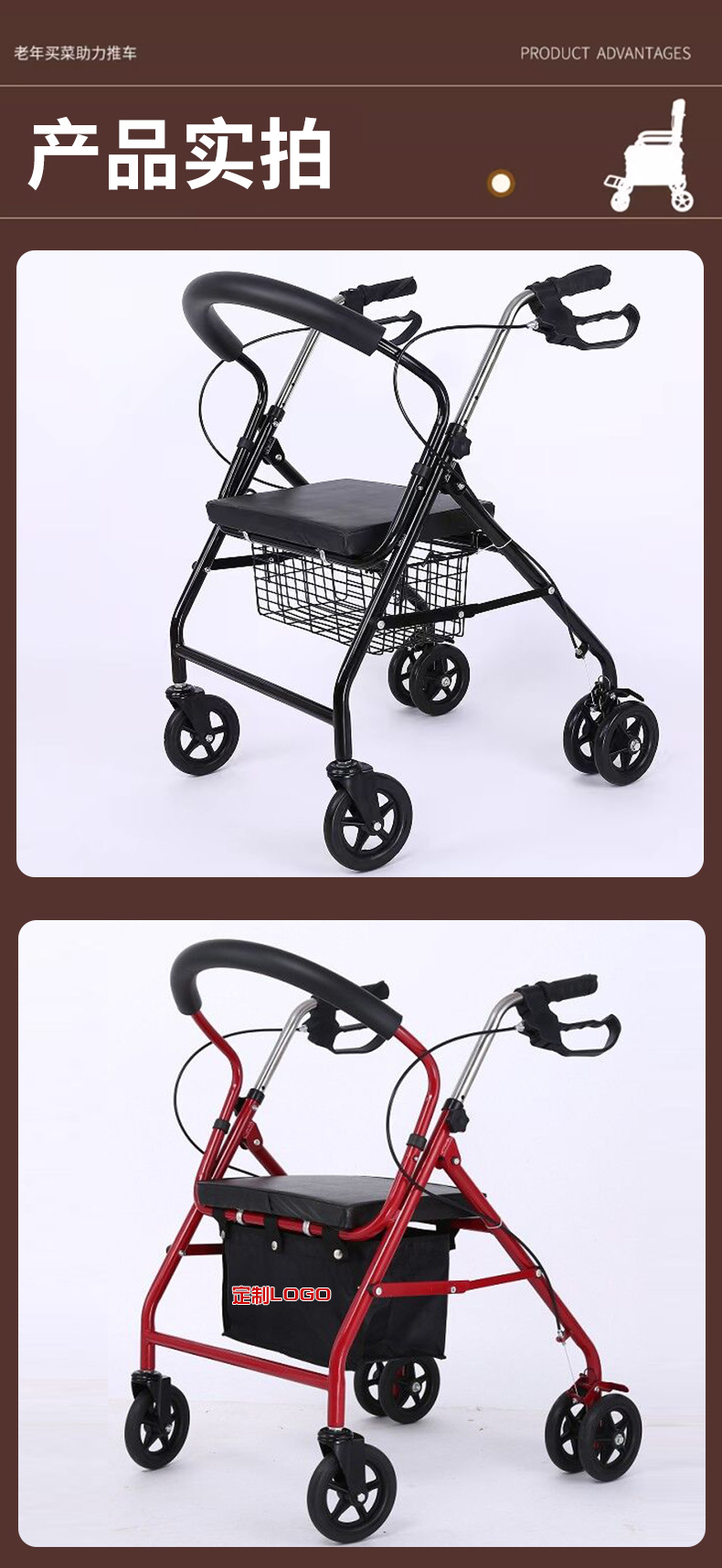 高齢者用歩行車卸売、手押し車、座れる買い物カート、高齢者補助歩行車、歩行補助車
