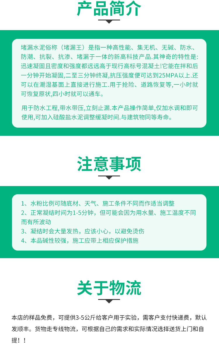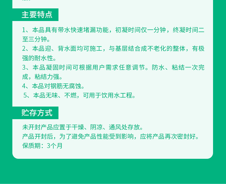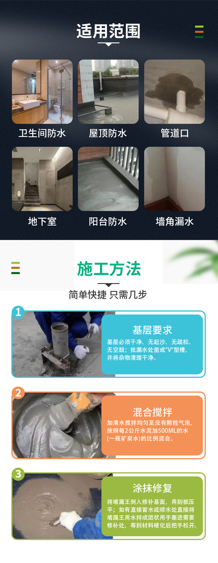 水不漏速凝快干剂水泥补漏剂厨房卫生间堵漏王堵漏宝防水材料涂刷