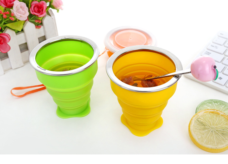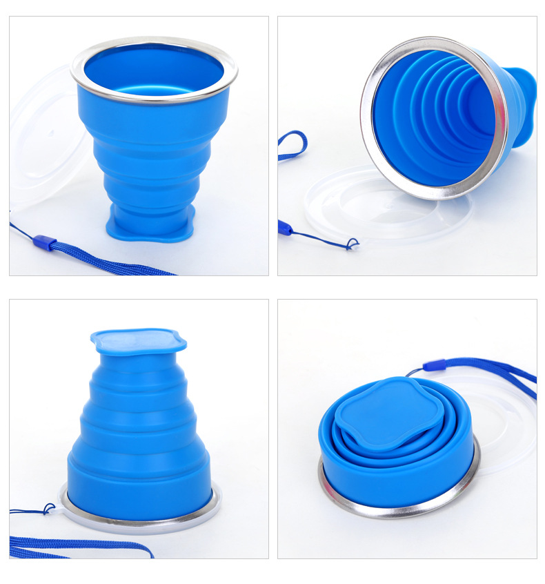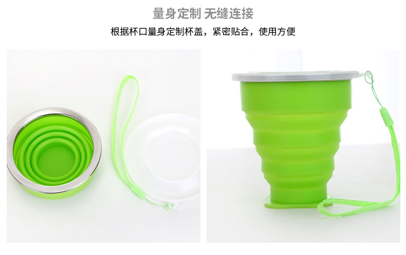 户外便携可折叠水杯多功能创意水杯 伸缩杯 硅胶折叠杯带盖200ML