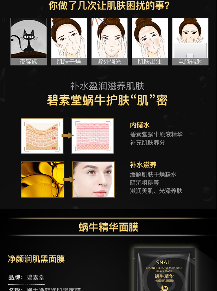 碧素堂カタツムリ精華浄顔潤肌黒マスク保湿シート卸売りスキンケアメーカー卸売り