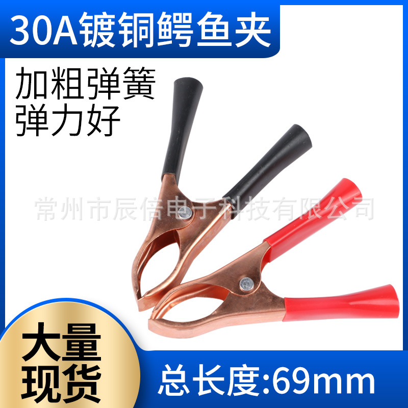 30a銅メッキワニクリップ車載電源バッテリー接続充電テストワニクリップ溶接線赤黒69mm