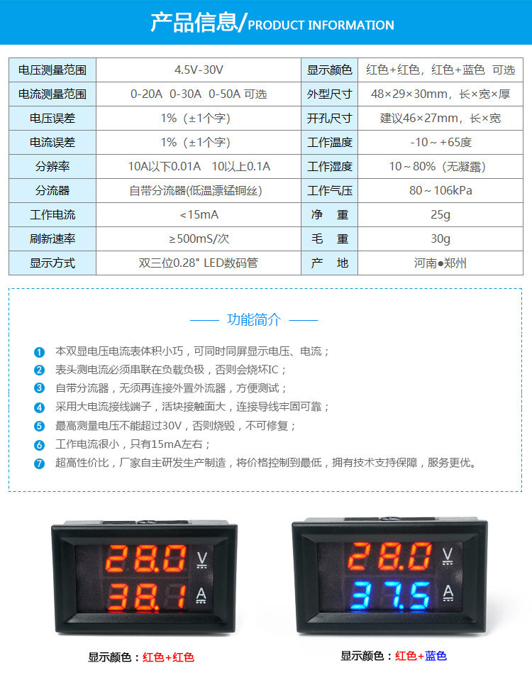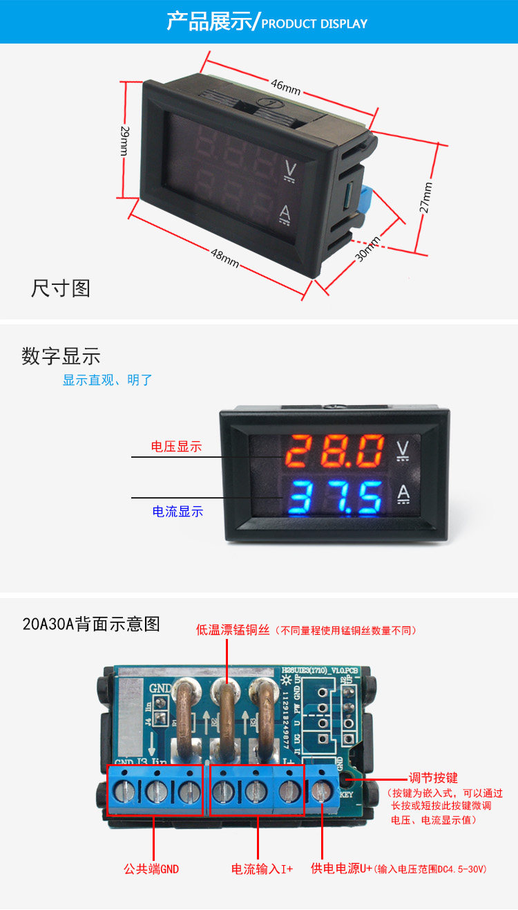 158.ui直流ダブル表示デジタル電流電圧計DC0-100V 1a 10a 50a 100a led