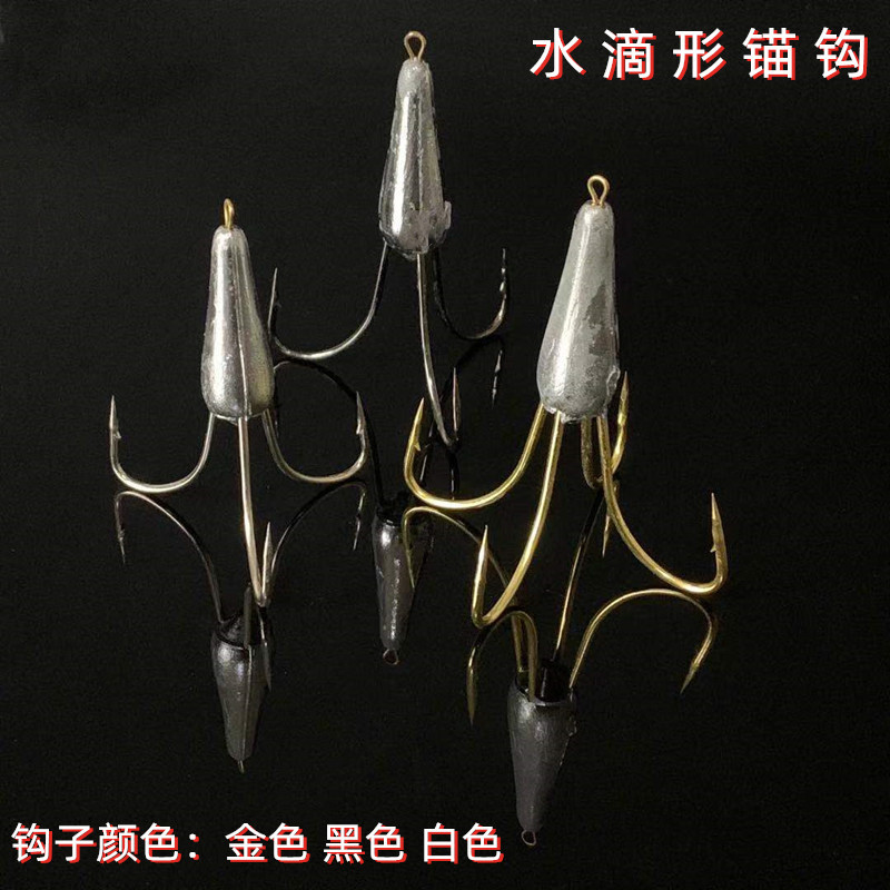 水滴形鉛付きアンカーフック金色黒色白色フック鉛付き三アンカーフック四アンカーフック手研アンカーフック