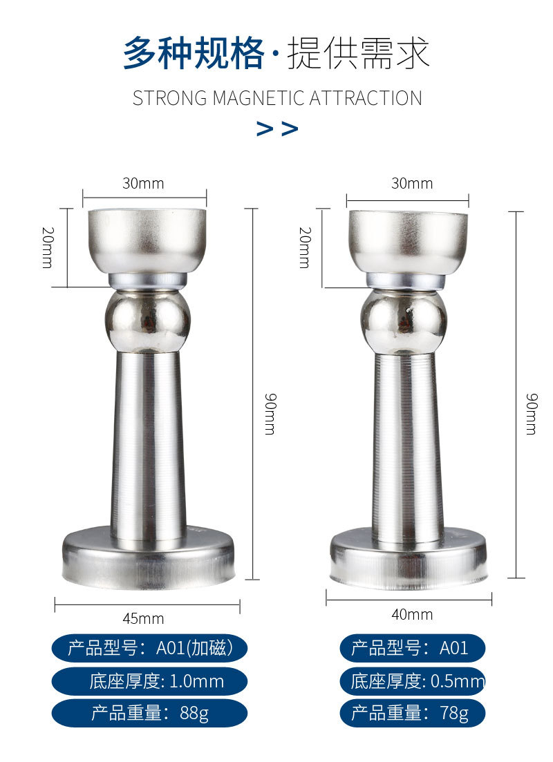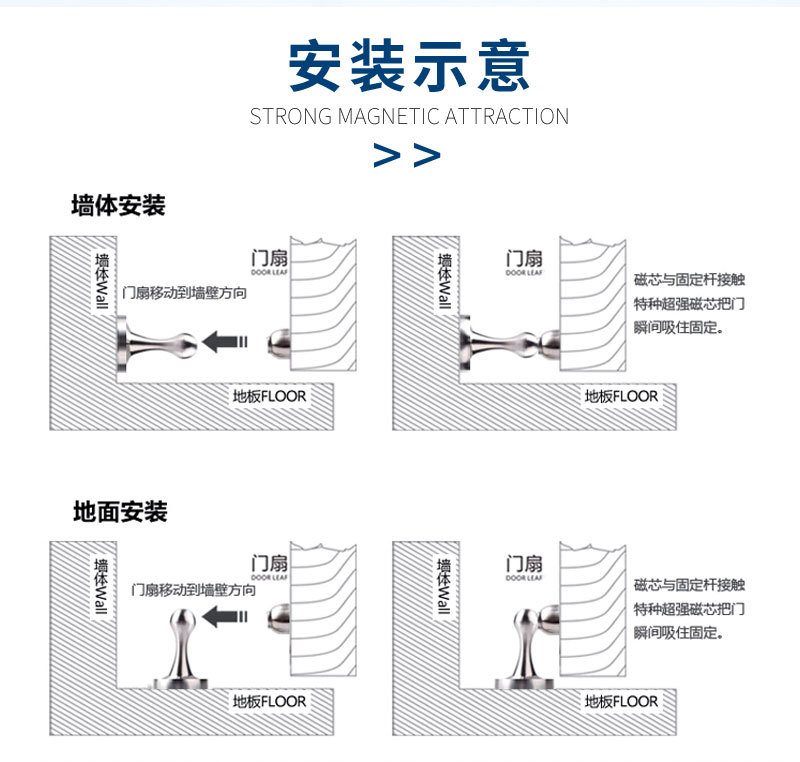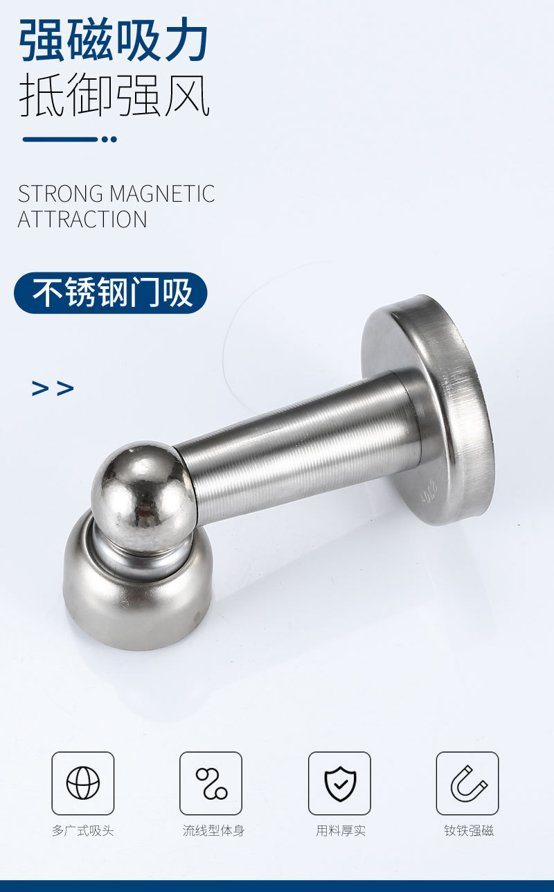 加长门吸 大门吸免打孔不锈钢门碰门档门顶地吸强磁地吸墙吸门阻