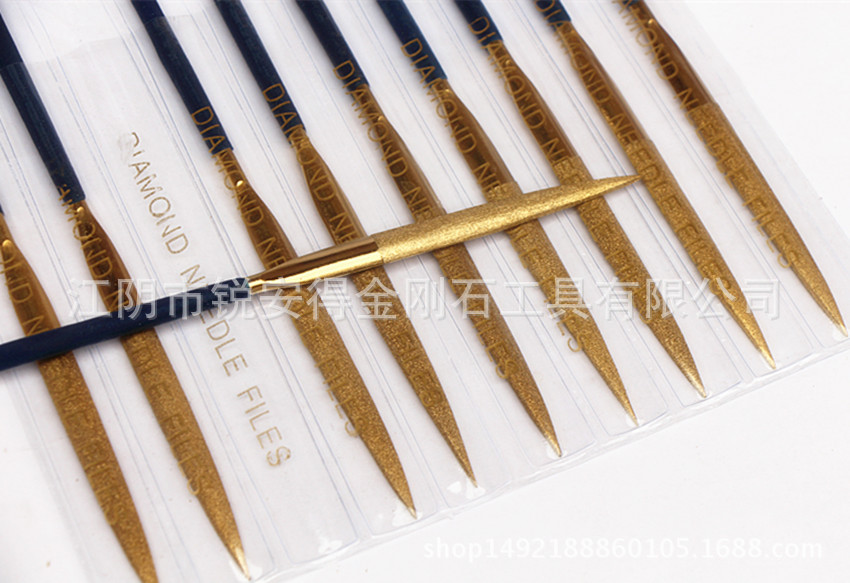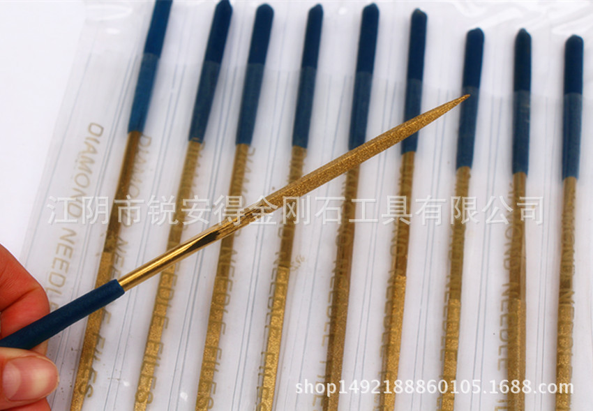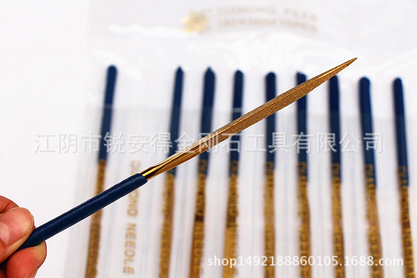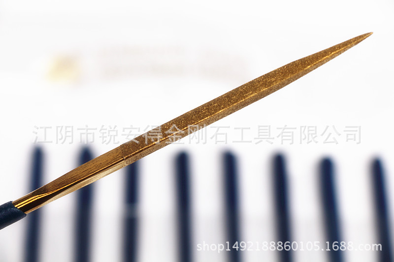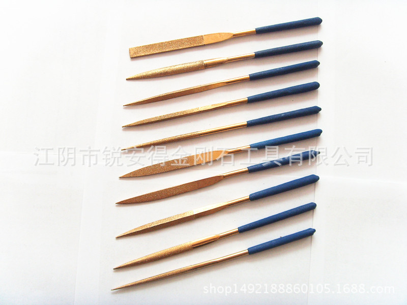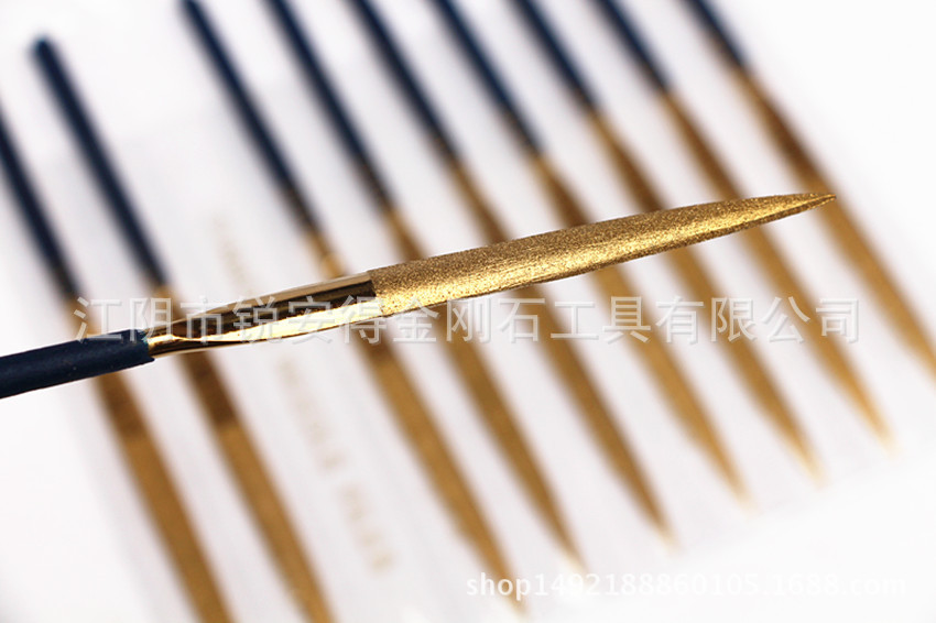 【金刚石锉刀的用途】:金刚石的锉几乎可以锉任何东西可以挫动任何车刀板,甚至是硬度69的高速钢,但不能用来修大形,只能用来修细节,用它锉刀刀的时候沿着刀刃的方向能推锉 出工整的刃线。粘火硬质合金,高硬度的钢铁,陶瓷,玻璃等,是轴承、模具、齿轮等行业的工件生产加工。