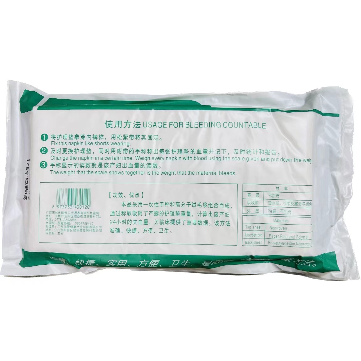 琪芳計量型産婦生理用ナプキン出血収集検査マット産婦産後計量出産用ナプキンメーカー