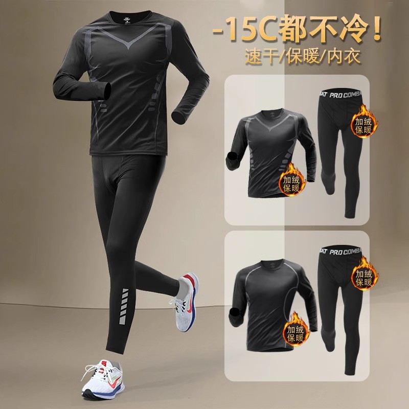 冬のランニングスーツ男性速乾レオタードとベルベット運動保温下着がフィットネス運動に乗って汗を吸う