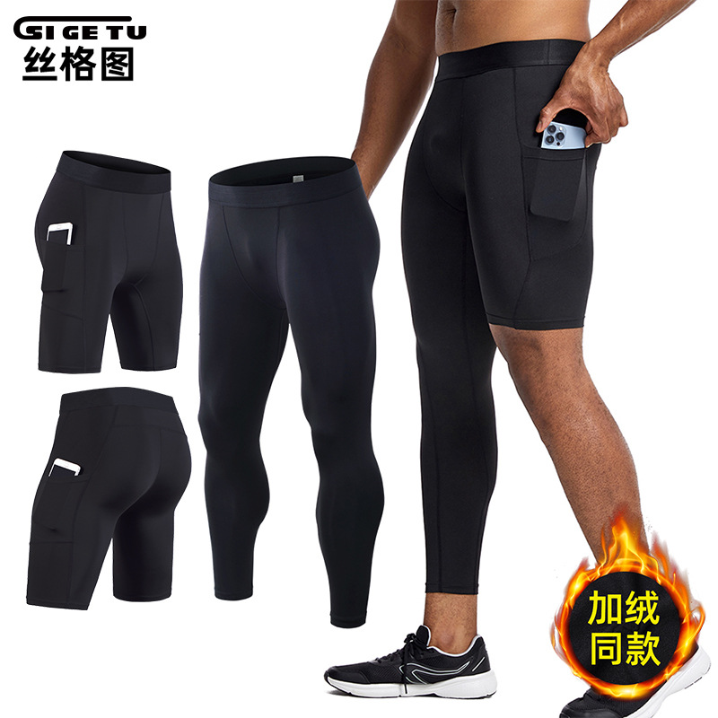 クロスボーダー運動タイツ男性フィットネスランニングトレーニングズボン通気速乾高弾タイツ卸売り