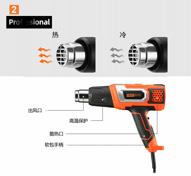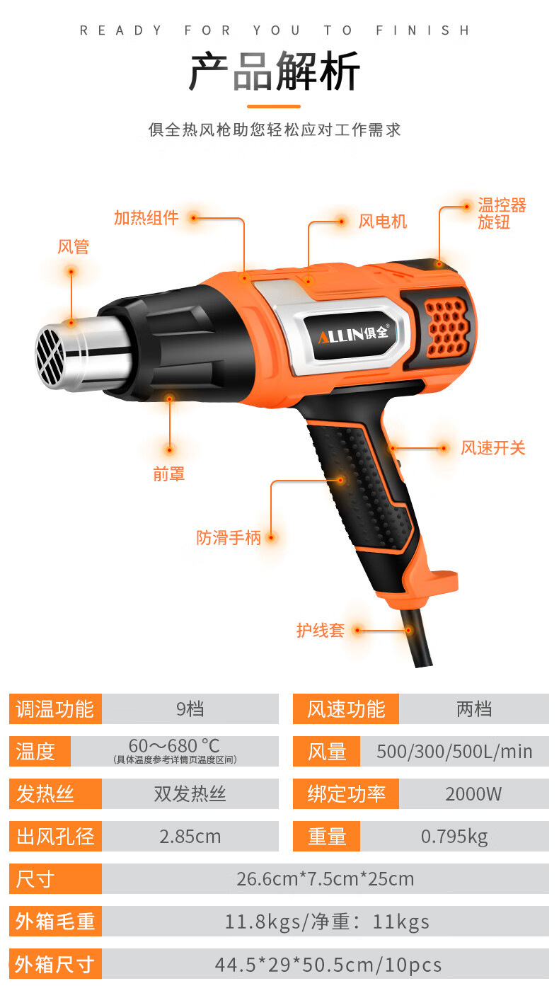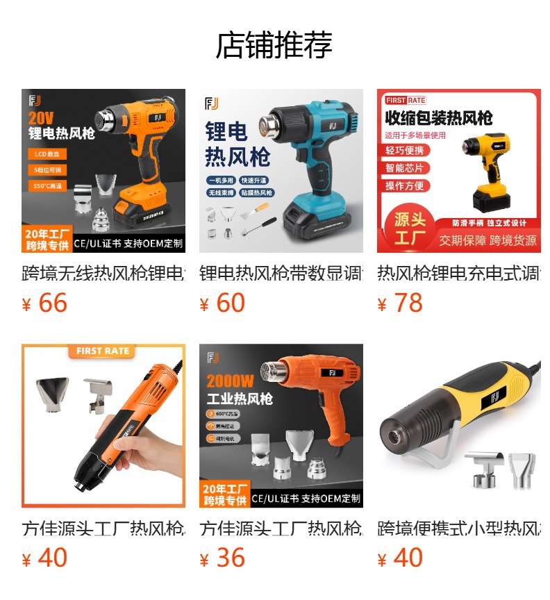 方佳源工場の熱風銃の大出力は2000w高温で温度を調整できます。