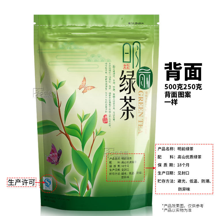 新型高山緑茶包装袋自封袋250g/500g半斤茶葉包装袋卸売り100