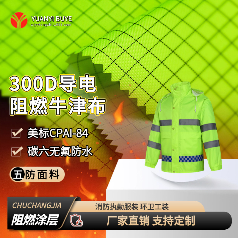 300D メッシュ導電性オックスフォード布アメリカ標準 84 難燃性 CPAI84 静電気防止レインコート消防任務警備服