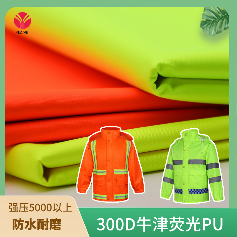 蛍光黄色 300D オックスフォード布白フィルム強力な防水防雨レインコート衛生服安全ベスト生地