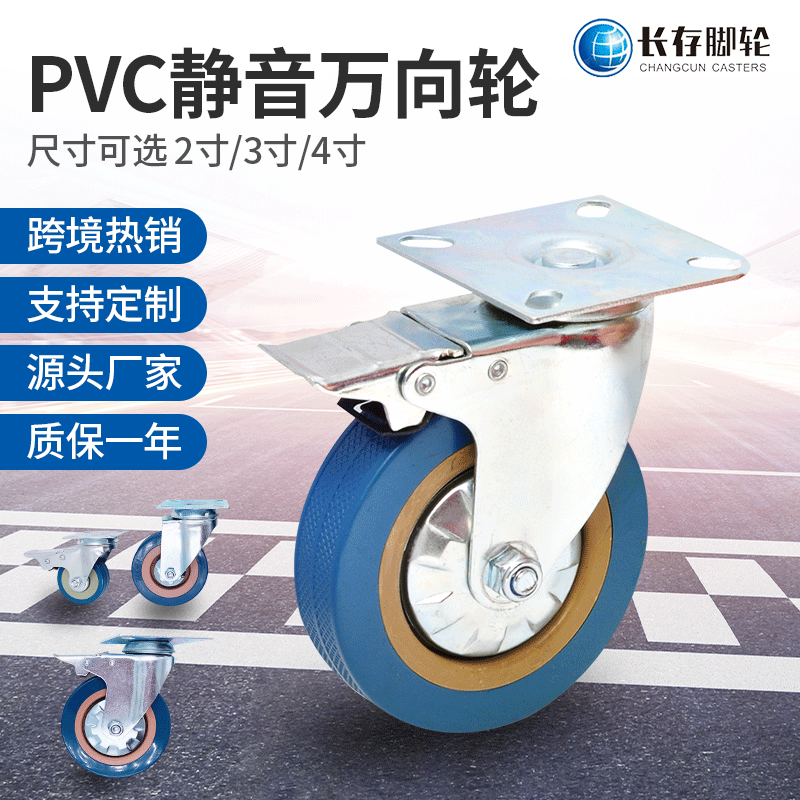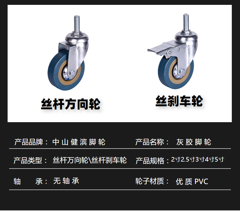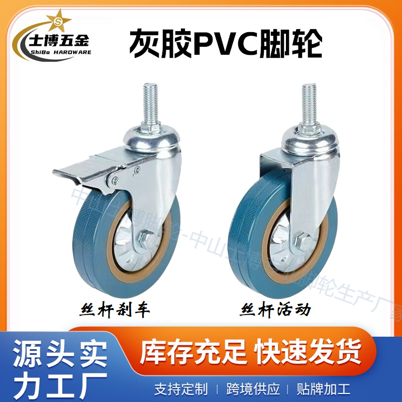 现货批发万向轮酒店餐车购物推车轮灰胶静音pvc轮子跨境热卖套装