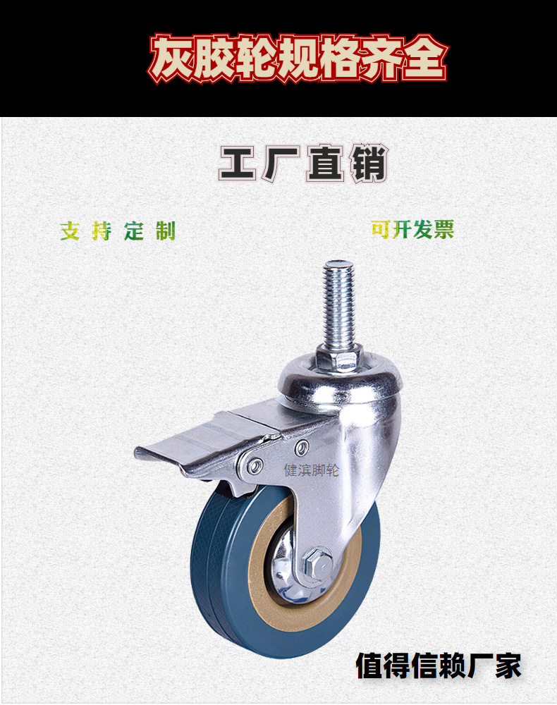 メーカー直営2インチ3インチ軽量静音食堂車灰ゴムキャスター4インチブレーキ自在棚カートゴム輪
