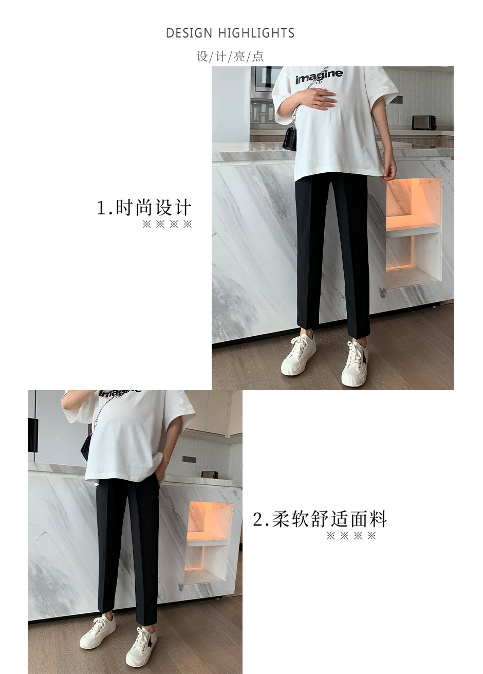春秋の妊婦用ドローストリングパンツ、ゆったりとしたストレートパンツ、妊婦服、九分丈のワークパンツ、腹部サポート付きスーツパンツ、冬用ロングパンツ、夏用