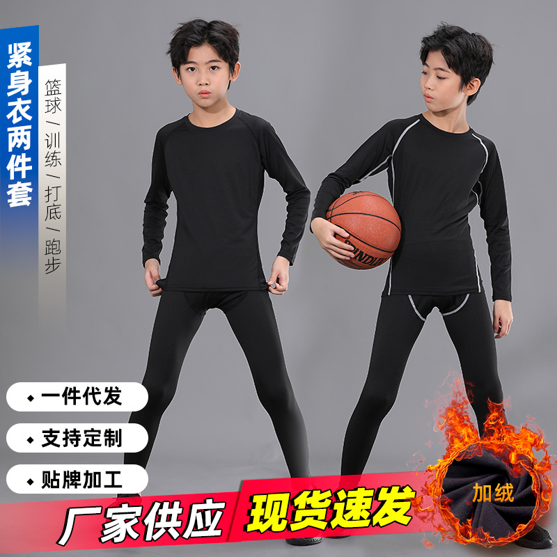 子供秋冬レオタード速乾衣底トレーニング服長袖男女子供成人サッカーバスケットボール運動フィットネス