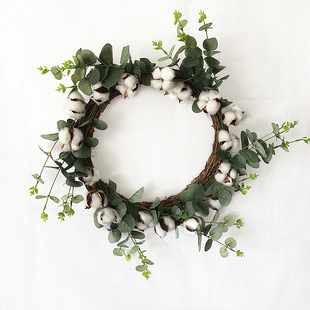 厂家批发 棉花干花仿真棉花花环圣诞节花环门环节日装饰跨境采购