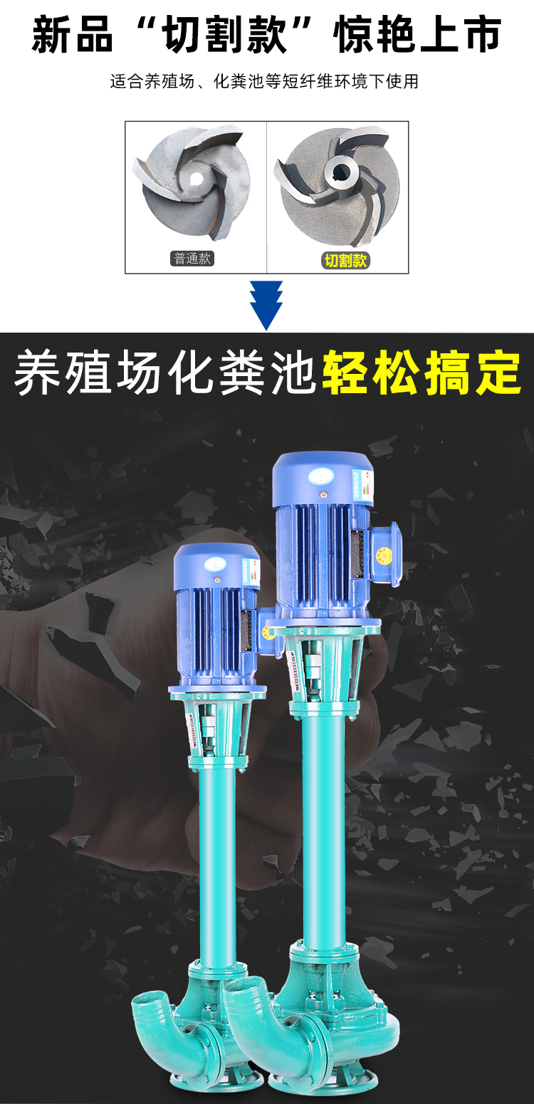 普斯泥糊ポンプ糞ポンプ三相380vリーマ付き立式泥棒ポンプ魚塘化糞池汚水銅芯