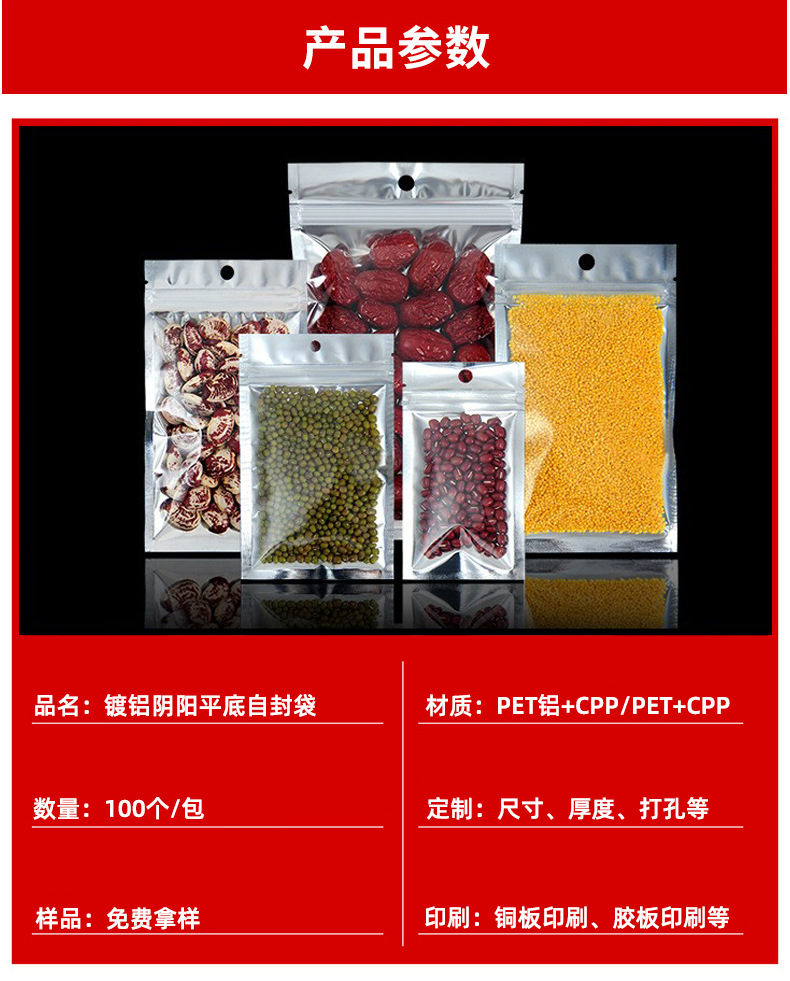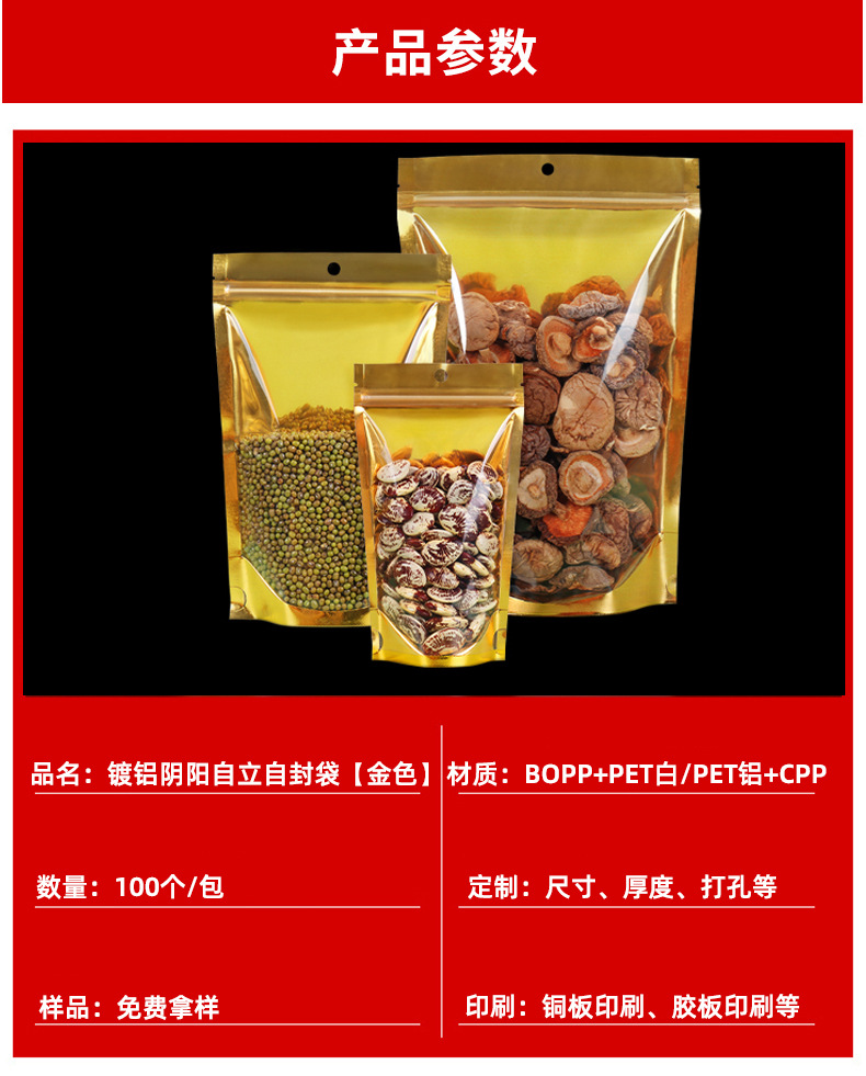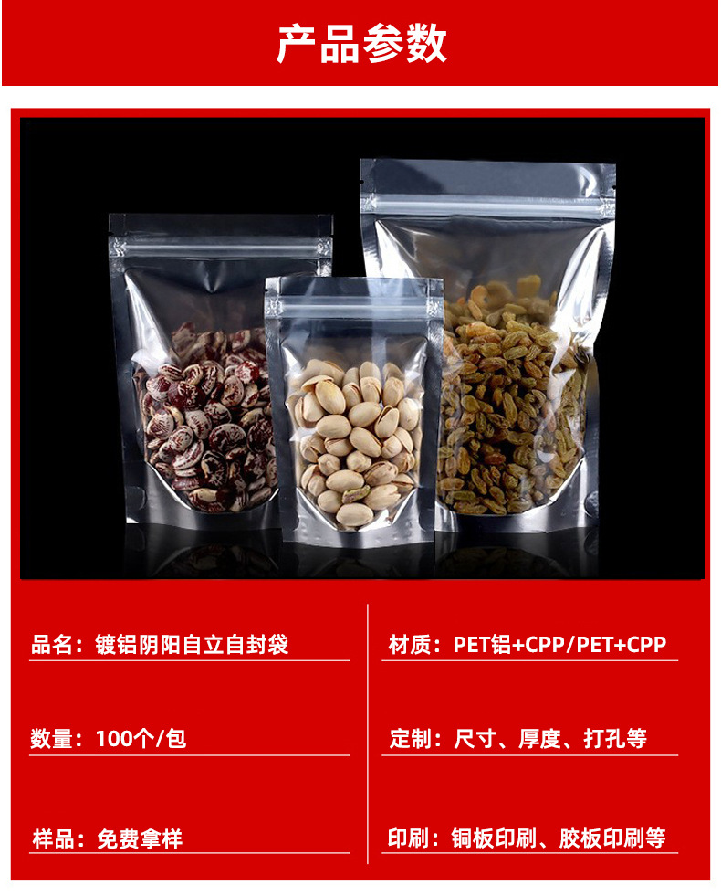 アルミメッキ陰陽自封袋アルミ箔自立袋半透明食品包装袋茶葉密封袋平底袋卸売り