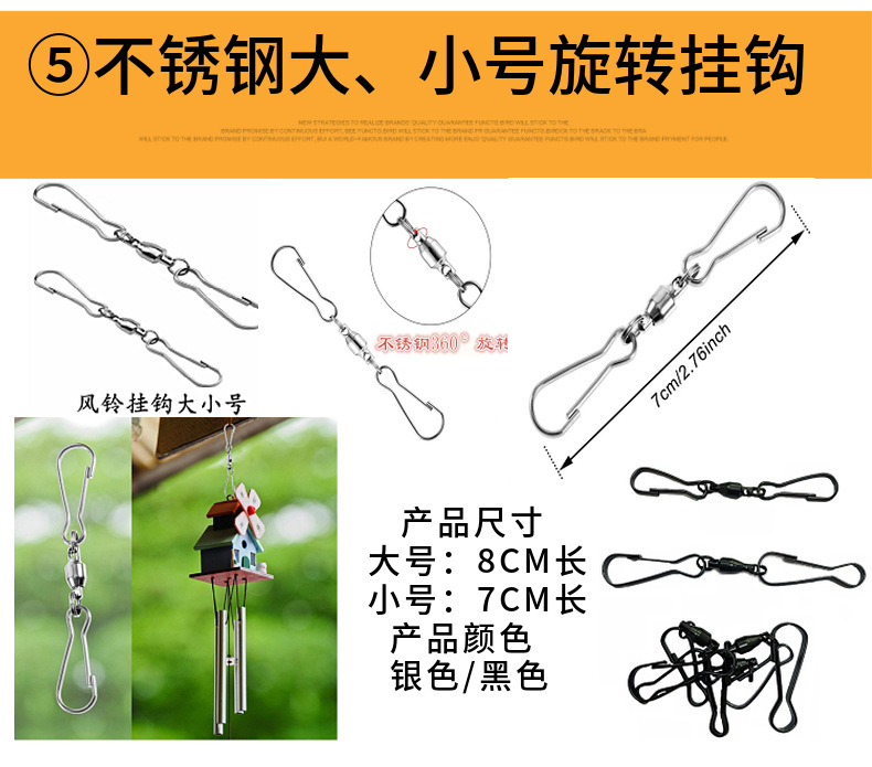 クロスボーダー人気ステンレス360 ° 回転風鈴フック屋外風鈴ストラップ部品錆びず長持ち