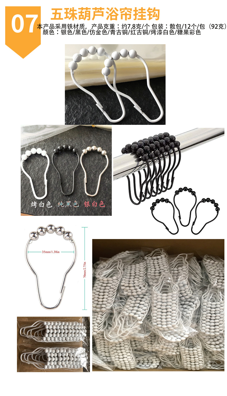 クロスボーダー人気吊り下げ式黒電気泳動鉄リングカーテンフック電気泳動カーテンクリップ電気泳動黒シャワーカーテンクリップ