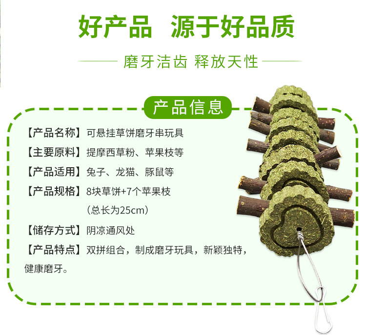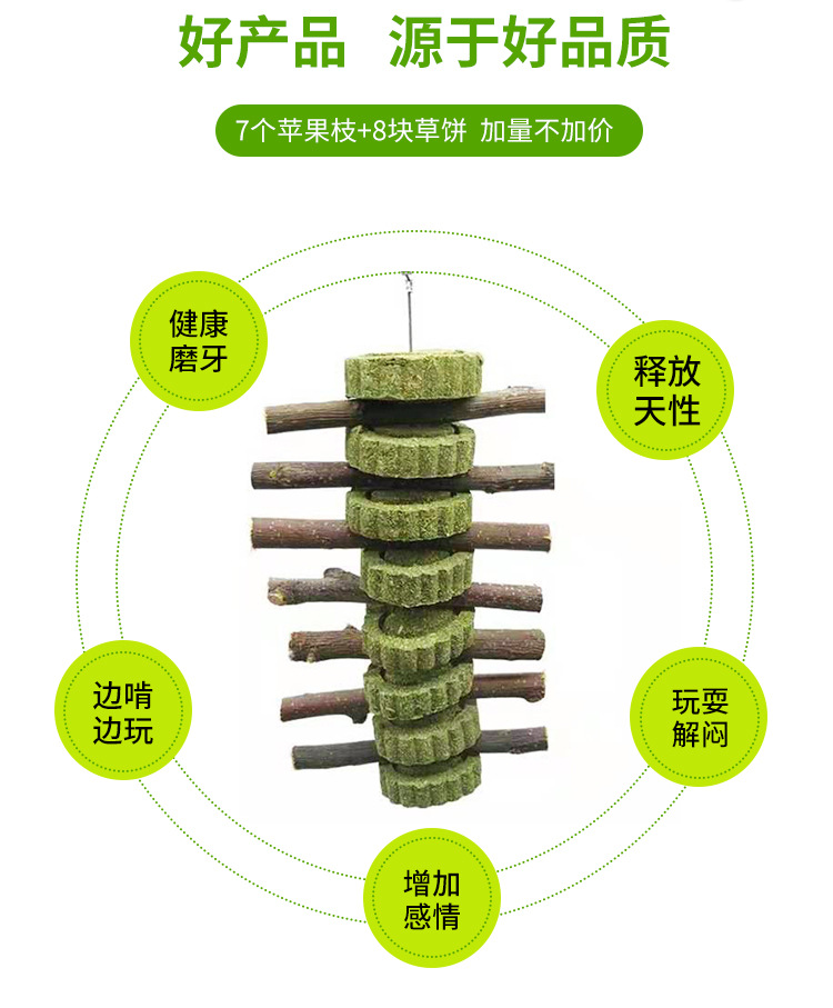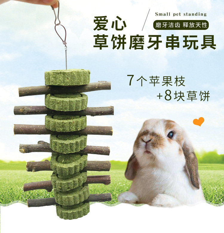 ウサギの歯ぎしり用草ケーキ串、ハムスター、ウサギ用ティモシー草ケーキ串、リンゴの枝噛む串、ウサギの歯ぎしり用おもちゃ吊り串