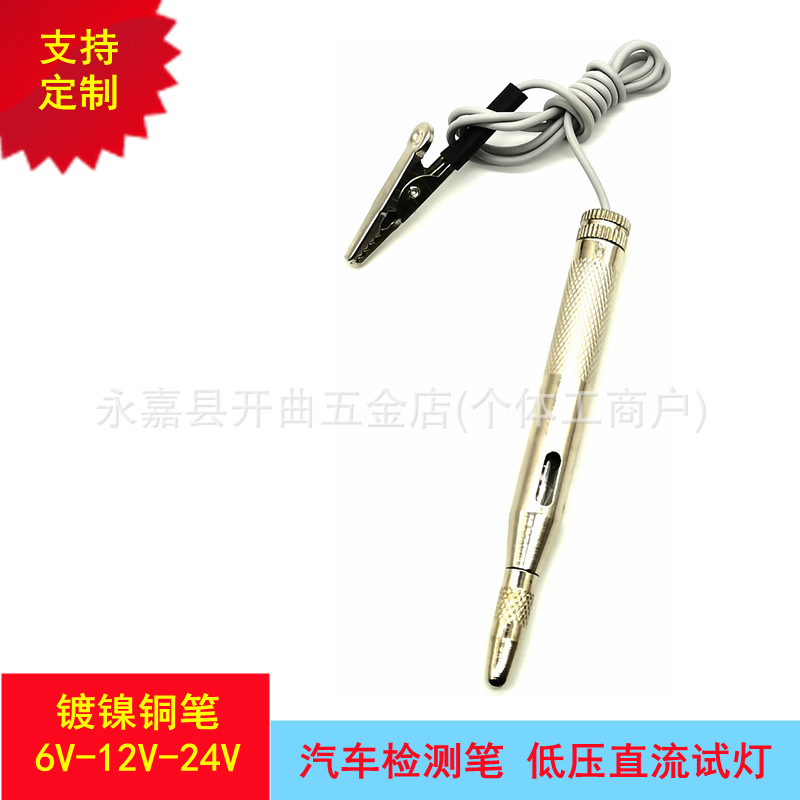 6-12-24v銅電気ペン自動車回路試験灯ニッケルメッキ銀白色回路修理検査測定ペン