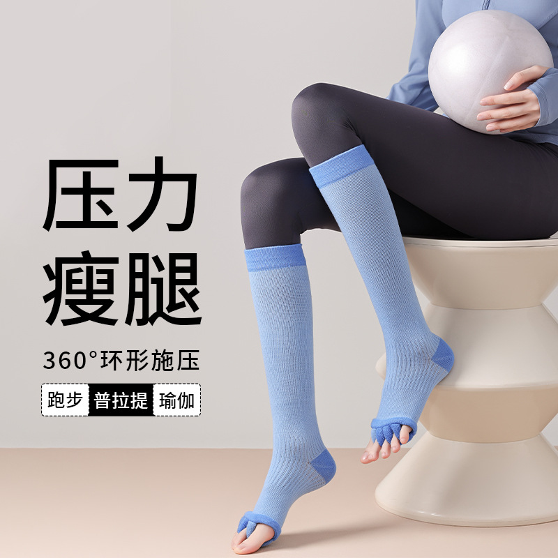 クロスボーダー新品プラティ靴下レディース秋冬ふくらはぎシェイプアップ圧力靴下プロスポーツ滑り止め五本指ヨガソックス