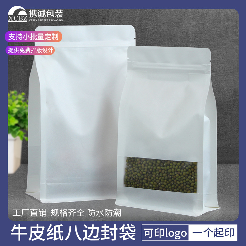 クラフト紙八辺封袋ナッツ食品包装袋開窓白色クラフト紙袋フロスト自封自立袋
