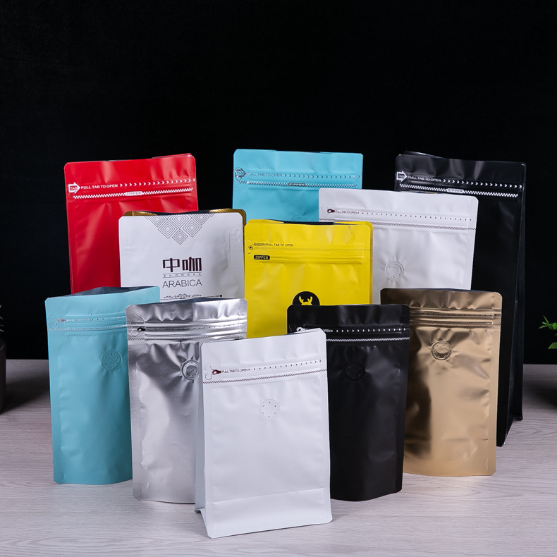 コーヒー豆包装袋、カラフルなアルミホイル八面シールコーヒーバッグ、ルービックキューブ、破れやすいジッパー、排気バルブ、茶葉密封袋