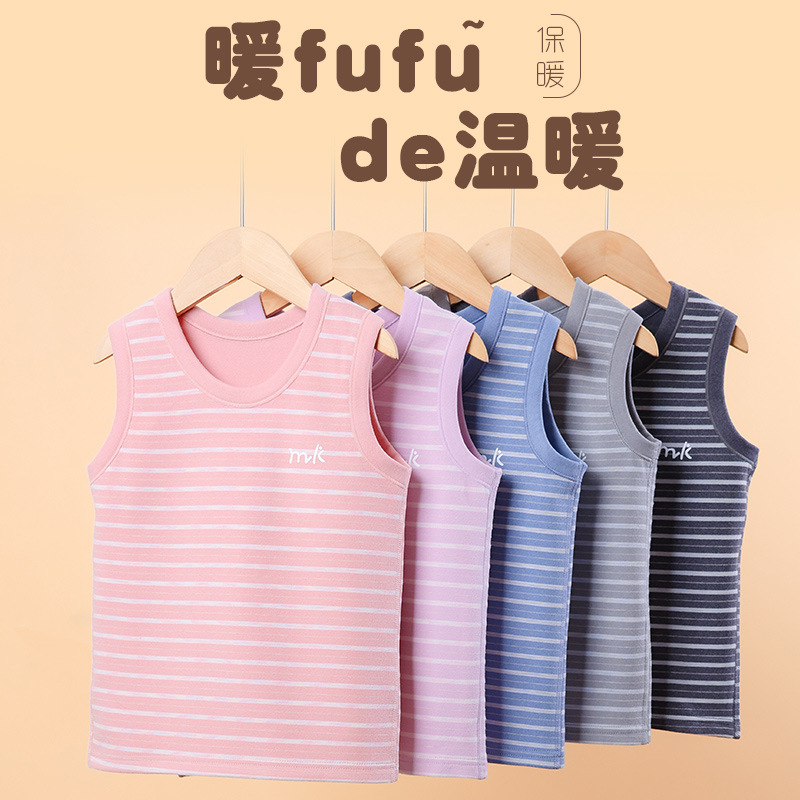 儿童保暖背心秋冬加绒男女童德绒内穿宝宝加厚打底内衣男孩马甲